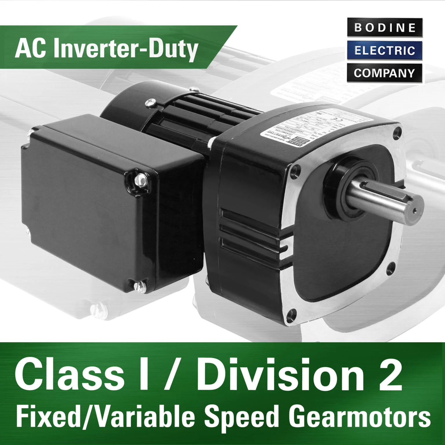 - Class I/Div 1 “explosion proof” AC inverter-duty 34R-FX gearmotors